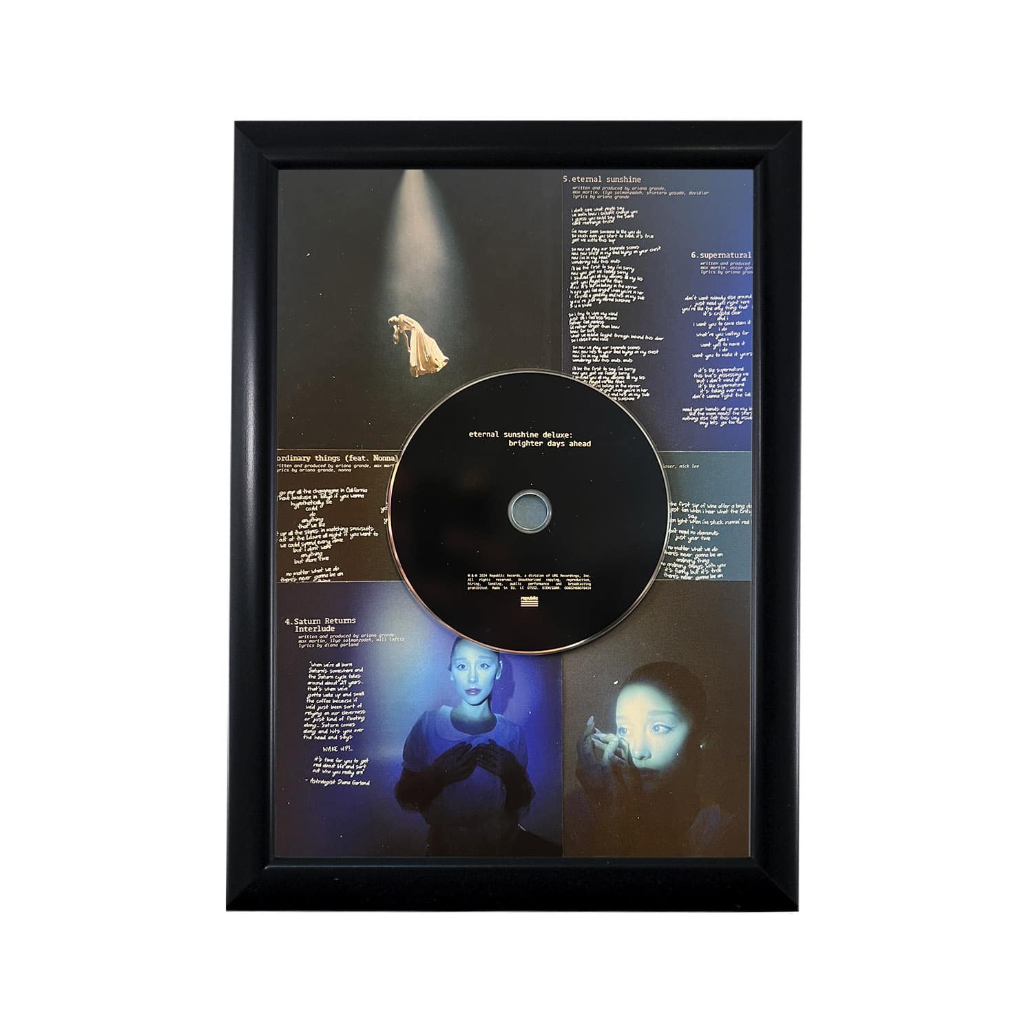 הדיסקים והתקליטים דבוקים לרקע העיצוב ולא ניתנים להוצאה מהמסגרת והאזנה.