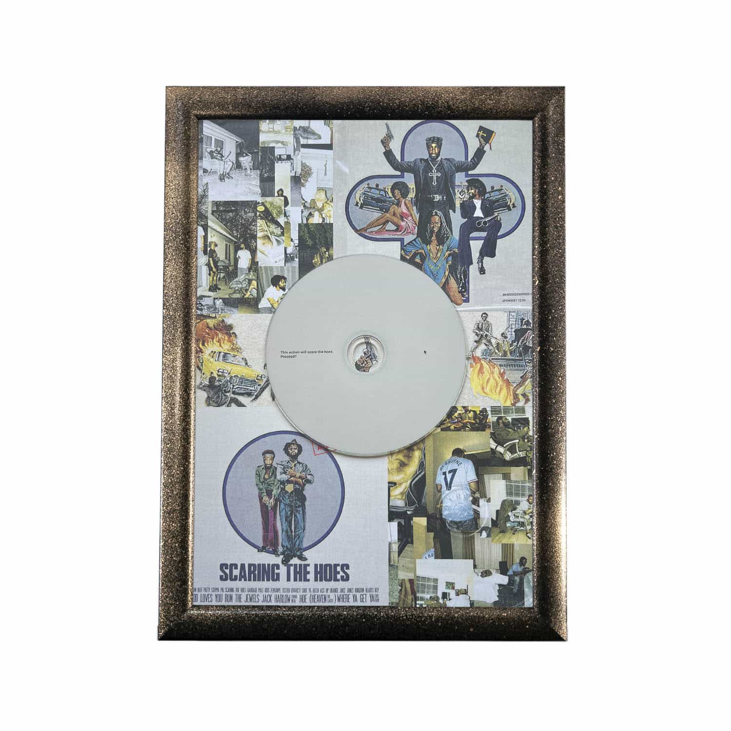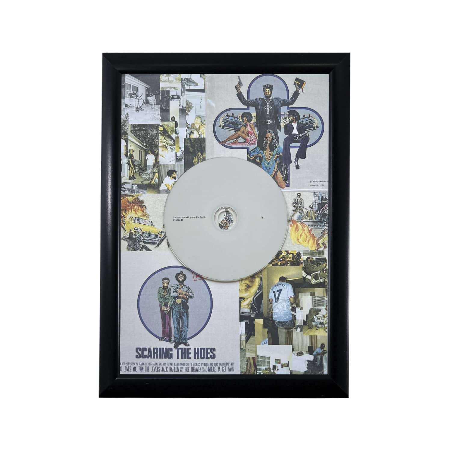 פריים דיסק ממוסגר לאלבום Scaring The Hoes של JPEGMAFIA ו- Danny Brown (ג'ייפגמאפיה ו- דני בראון)