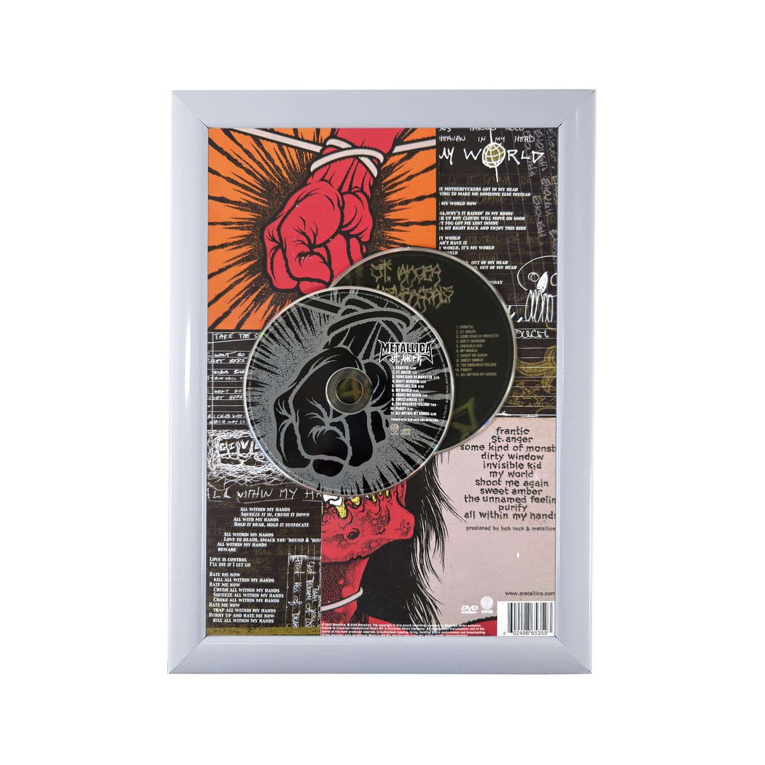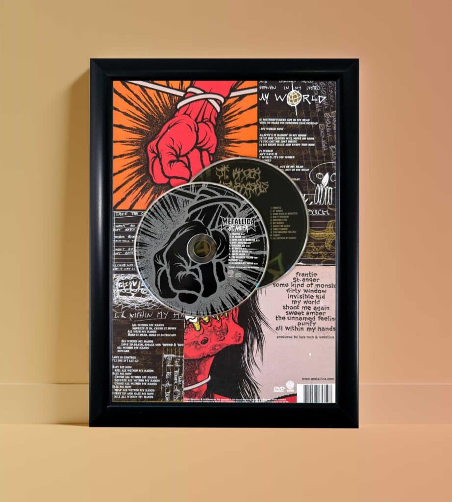 הדיסקים והתקליטים דבוקים לרקע העיצוב ולא ניתנים להוצאה מהמסגרת והאזנה.
