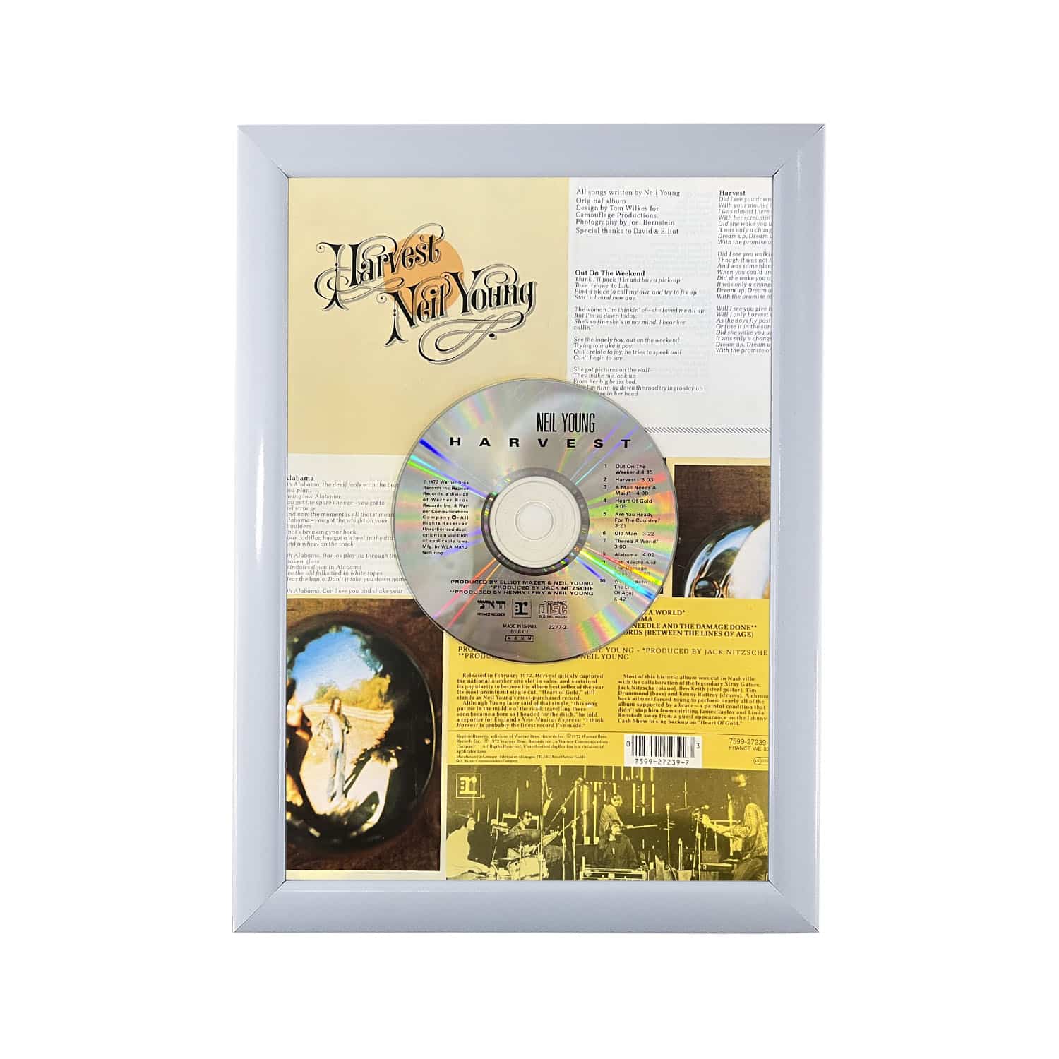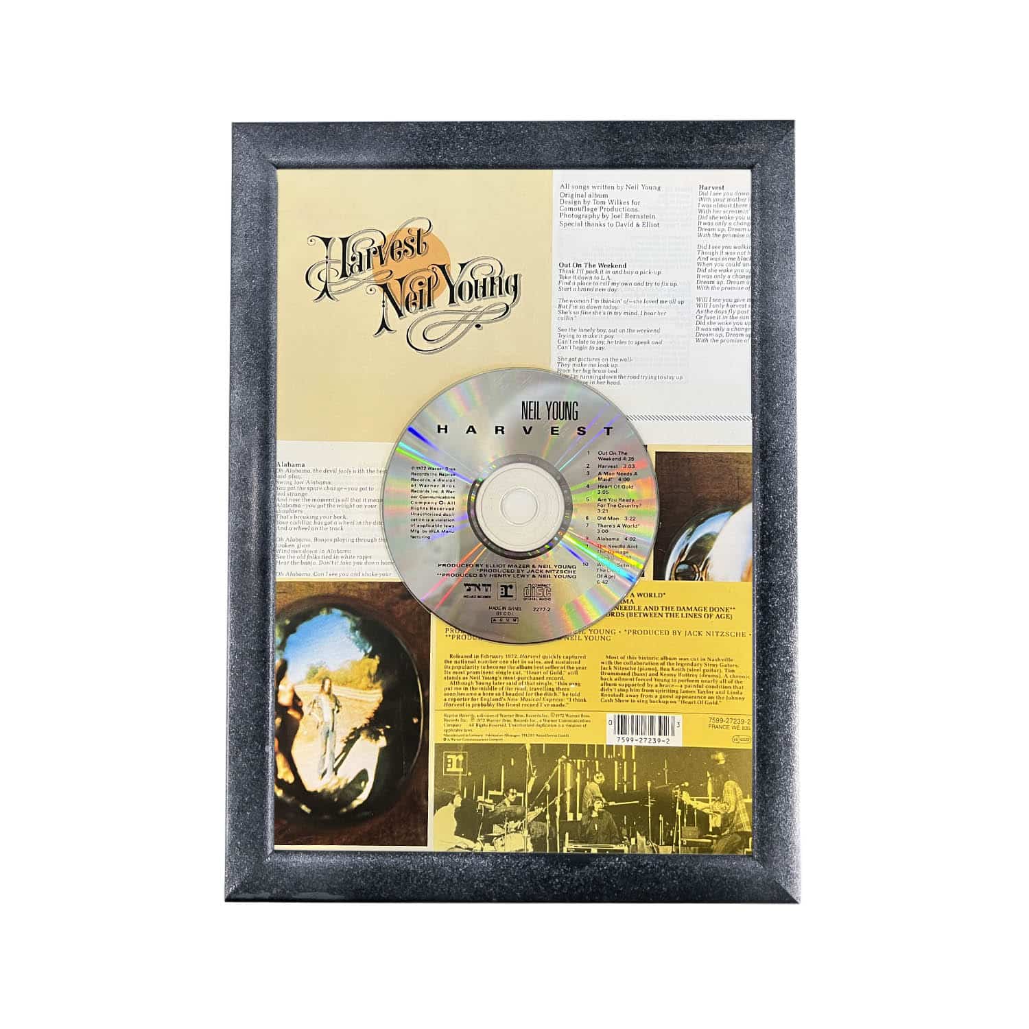 הדיסקים והתקליטים דבוקים לרקע העיצוב ולא ניתנים להוצאה מהמסגרת והאזנה.